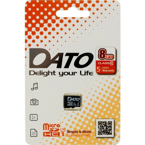 Бренд: DATOкарта памяти, microSDHC, 8 Гб, чтение: 20 Мб/с, запись: 10 Мб/с