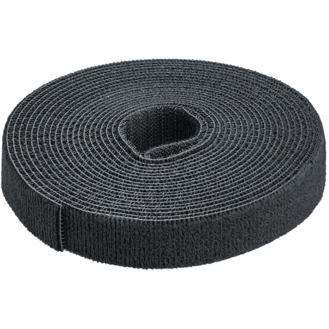 лента-липучка, 5 м x 20 мм, цвет: чёрный, 1 шт.