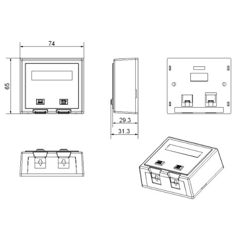 Корпус настенной розетки Hyperline SBB4-2-WH_0