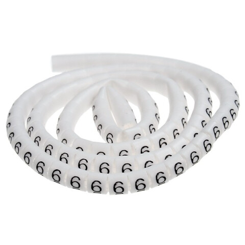 маркеры на кабель, круглые, цифра 6, внутренний диаметр 5.1мм, 100 шт