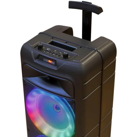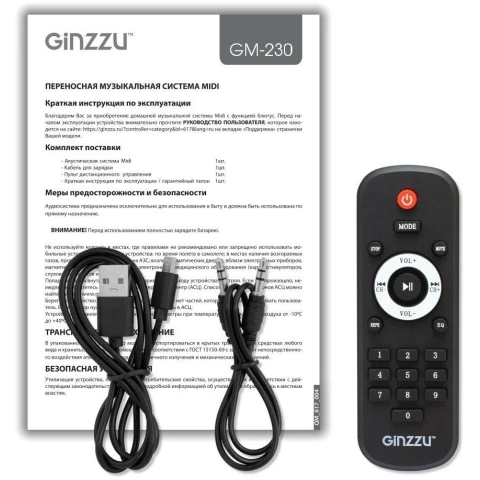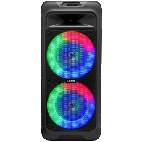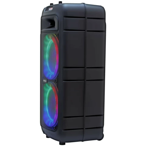 портативная акустика стерео, мощность 48 Вт, корпус из пластика, Bluetooth, питание от батарей, поддержка карт памяти, радиотюнер, пульт ДУ
