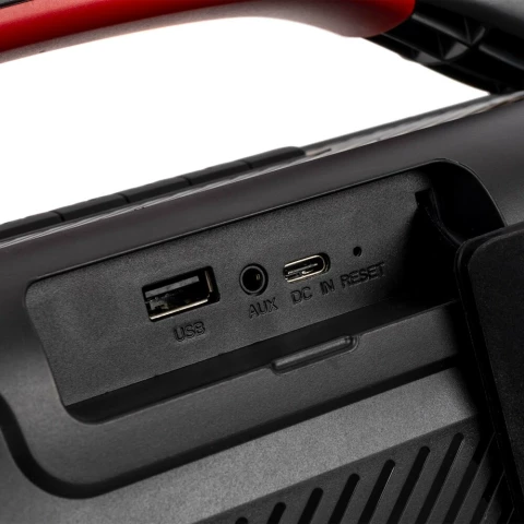 портативная акустика стерео, мощность 50 Вт, корпус из пластика, Bluetooth, USB, питание от батарей, радиотюнер