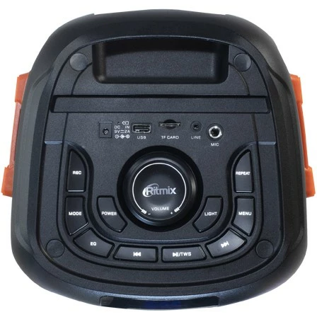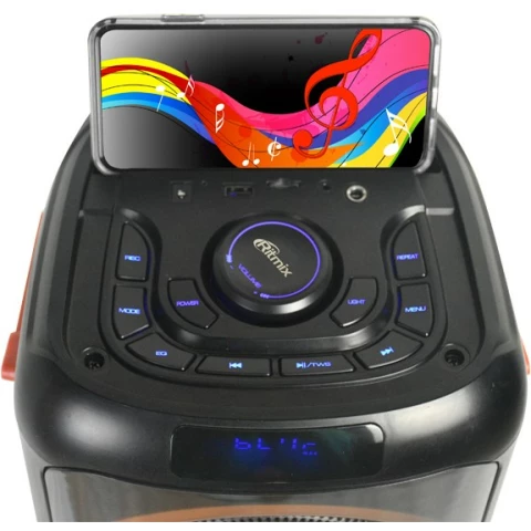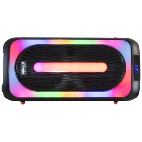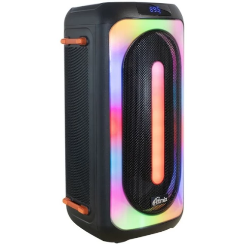 портативная акустика стерео, мощность 60 Вт, корпус из пластика, Bluetooth, питание от батарей, поддержка карт памяти, радиотюнер