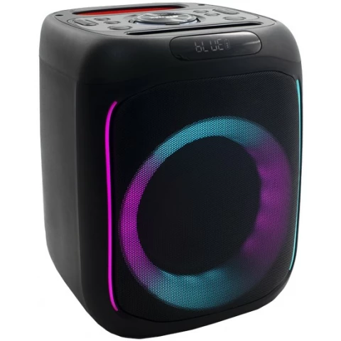 портативная акустика моно, мощность 50 Вт, корпус из пластика, Bluetooth, питание от батарей, поддержка карт памяти, радиотюнер