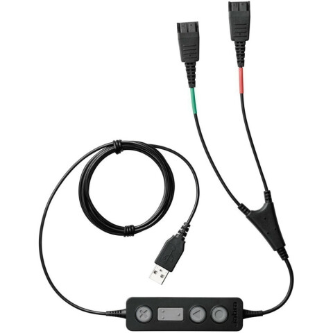 Y-образный USB-кабель, предназначенный для соединения двух гарнитур, имеющих разъемы Jabra Quick Disconnect (QD), с одним компьютером, благодаря чему супервайзер может включаться в разговор оператора с клиентом или просто слушать их беседу