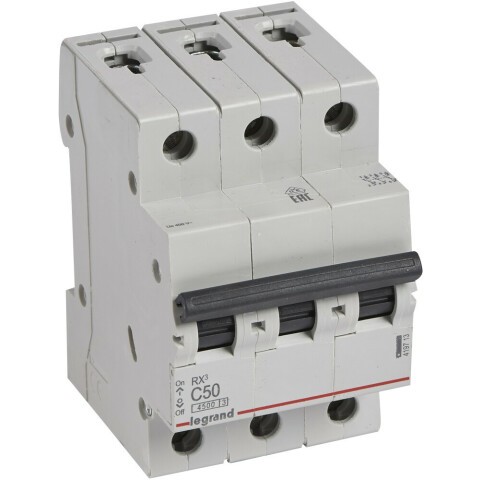 автоматический выключатель на DIN-рейку, 3-полюсный, напряжение: 400 В, ток: 50 A, тип расцепления: C, отключающая способность: 4.5 kA, IP20