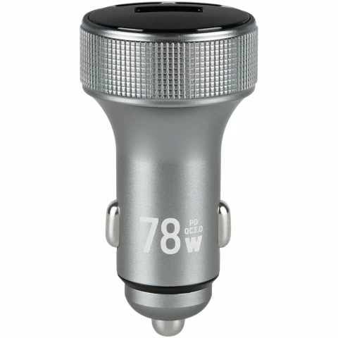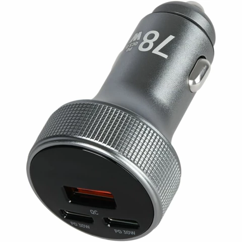 автомобильное зарядное устройство, мощность 78 Вт, сила тока 3 A, 1x USB, 2x USB Type-C, быстрая зарядка