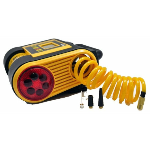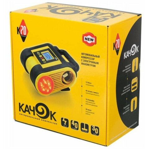 тип: поршневой, производительность на входе 40 л/мин, максимальное давление 10 атм, тип подключения: в гнездо прикуривателя, напряжение: 12 В, длина кабеля питания 2.8 м