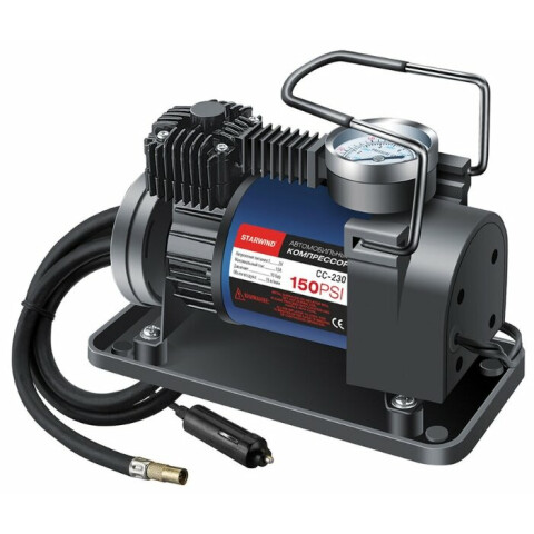 тип: поршневой, производительность на входе 35 л/мин, максимальное давление 10.2 атм, тип подключения: в гнездо прикуривателя, напряжение: 12 В, длина воздушного шланга 0.75 м, длина кабеля питания 3 м