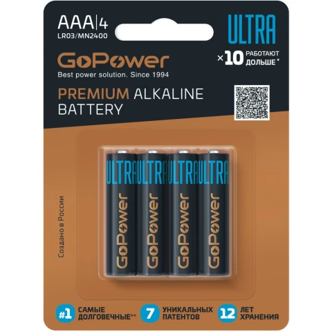 Батарейка GoPower ULTRA (AAA, 4 шт)