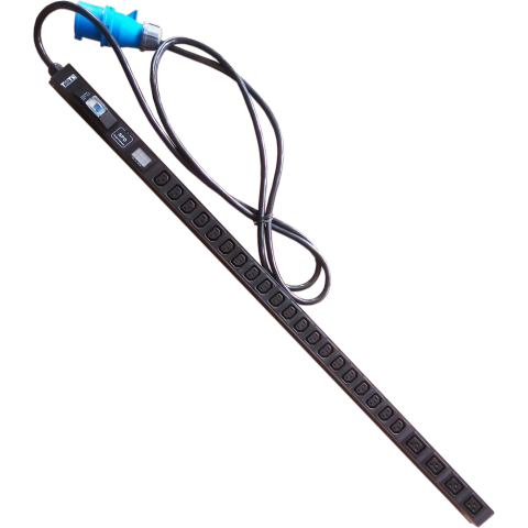 вертикальный блок розеток 32А на 4 гнезда С19 и 20 гнезд С13, с вилкой IEC 309, автоматом защиты и ампер/вольтметром
