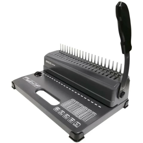 переплетчик на пластиковую пружину, механическая перфорация, максимальный формат: A4, сшивание: 450 листов, перфорация: 12 листов (21 отверстие), макс. диаметр пружины: 51 мм