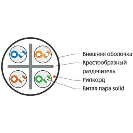 Бренд: Hyperlineуличный кабель UTP, категория 6, одножильный, 4 пары, оболочка LSZH, 500 м