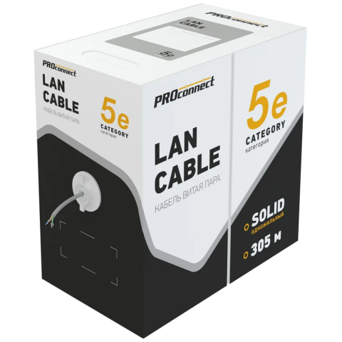 кабель UTP, категория 5e, одножильный, 4 пары, оболочка PVC, 305 м