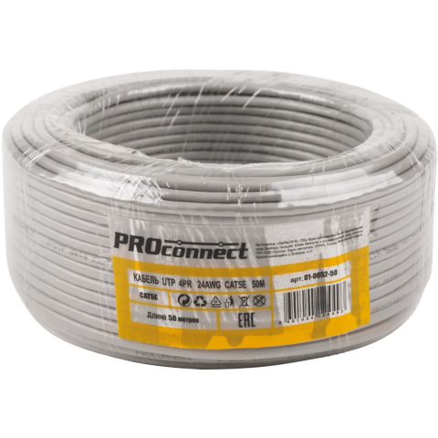 Бренд: Proconnectкабель UTP, категория 5e, одножильный, 4 пары, оболочка PVC, 50 м