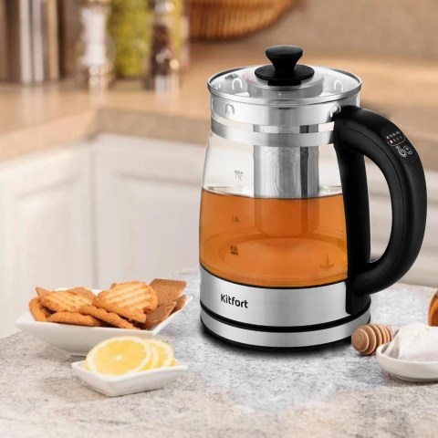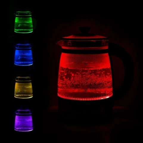 чайник, объём: 1.7 л, мощность: 2200 Вт, закрытая спираль, материал корпуса: металл/стекло, подсветка воды при работе, поддержание тепла