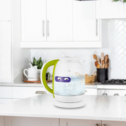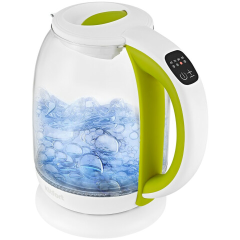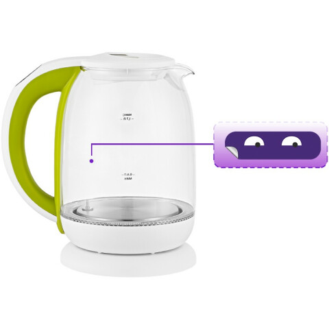 чайник, объём: 1.7 л, мощность: 2200 Вт, закрытая спираль, материал корпуса: стекло, подсветка воды при работе, поддержание тепла