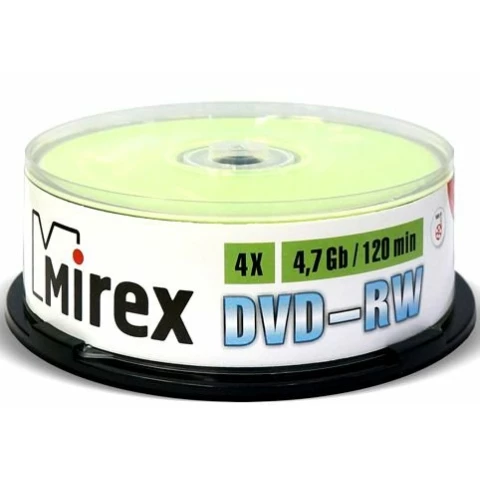Диск DVD-RW Mirex 4.7Gb 4x Cake Box (25шт) (202530)