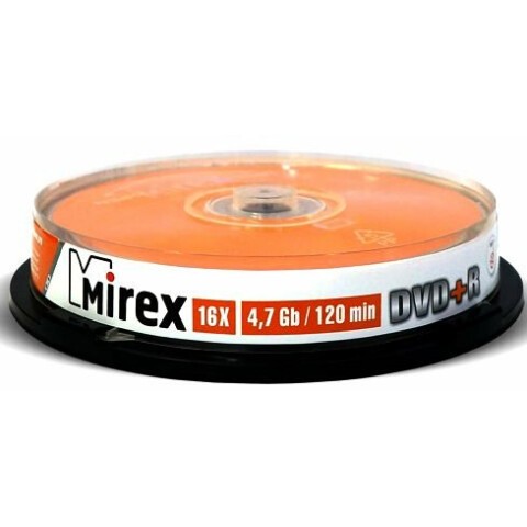 Диск DVD+R Mirex 4.7Gb 16x Cake Box (10шт) (202493)