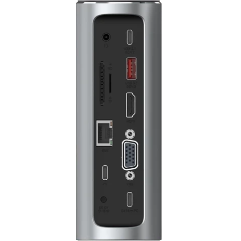 подключение USB Type-C, разъёмы: HDMI, VGA (D-Sub), 2xUSB 3.0, USB 3.2 Gen2, USB Type-C, USB Type-C PD, 3.5 мм jack, сетевой интерфейс (RJ-45), питание от USB, кардридер: SD, microSD