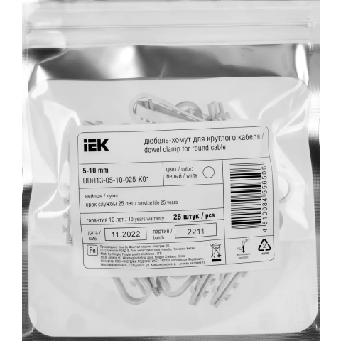 Бренд: IEKдюбель-хомут, диаметр охвата 10 мм, цвет: белый, 25 шт.