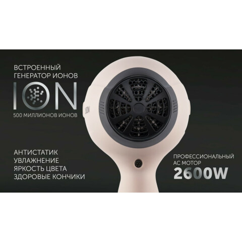 обычный фен, мощность 2600 Вт, подача холодного воздуха, ионизация