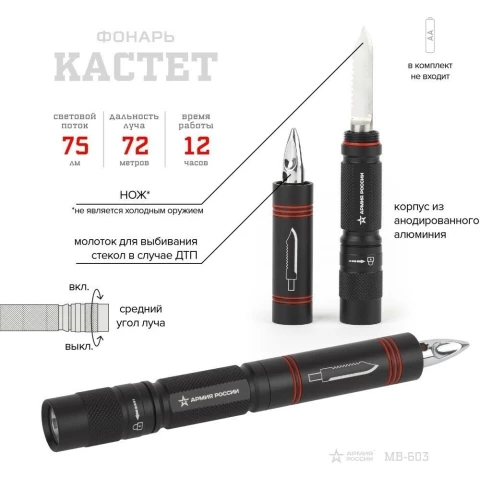 тип: ручной, световой поток: 75 лм, дальность освещения: 72 м, максимальное время работы: 12 ч, тип батарей: AA