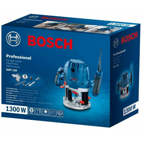 вертикальный фрезер, потребляемая мощность 1300 Вт, скорость вращения 11000-28000 об/мин, глубина фрезерования 55 мм, регулировка скорости вращения, поддержание постоянной скорости