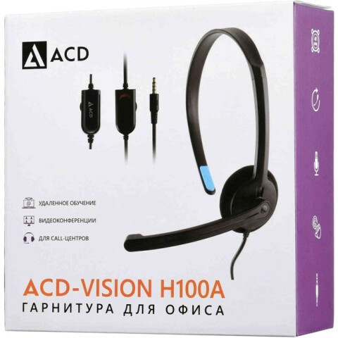 гарнитура моно, подключение: mini jack 3.5мм, 40мм динамик, 32 Ом, 20-20000 Гц, 110 дБ, поворотный микрофон, управление на проводе, 1.6м