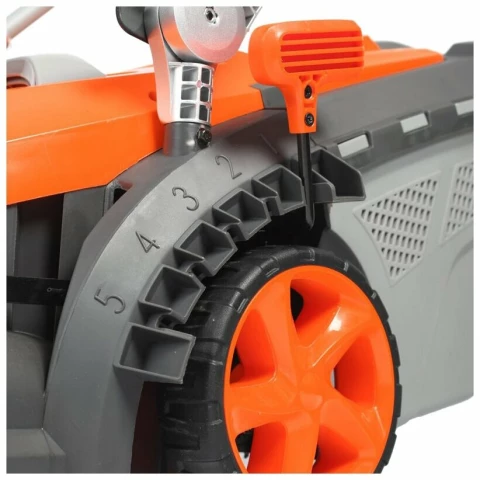 колесная газонокосилка, электрический двигатель, ширина скашивания: 37 см, высота скашивания: 25-75 мм, выброс травы назад