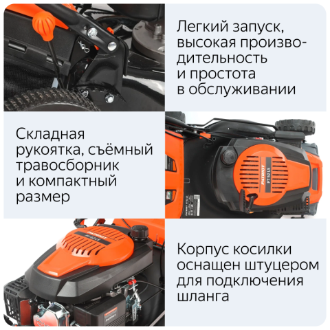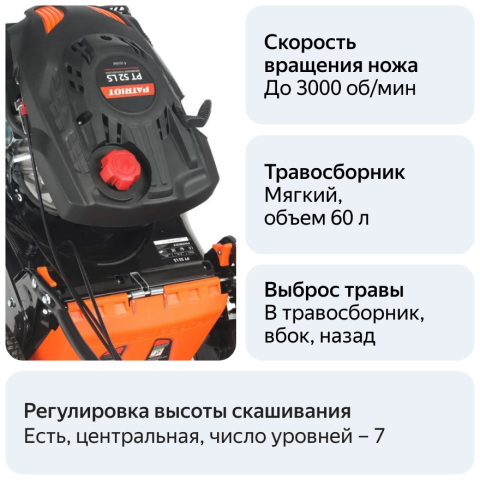 самоходная газонокосилка, бензиновый двигатель, 3000 об./мин, ширина скашивания: 51 см, высота скашивания: 30-75 мм, выброс травы в травосборник, вбок