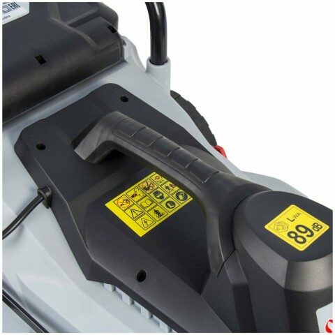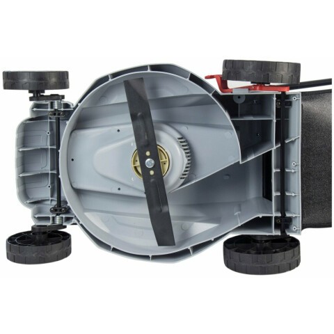 колесная газонокосилка, электрический двигатель, 3300 об./мин, ширина скашивания: 38 см, высота скашивания: 25-75 мм, выброс травы назад