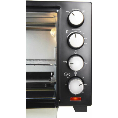 мини-печь, 1600 Вт, объём камеры: 30 л, управление: механическое, режимы работы: 4, режимы температуры: 100-250 °C, в комплекте: противень/решетка-гриль/держатель для решетки и противня