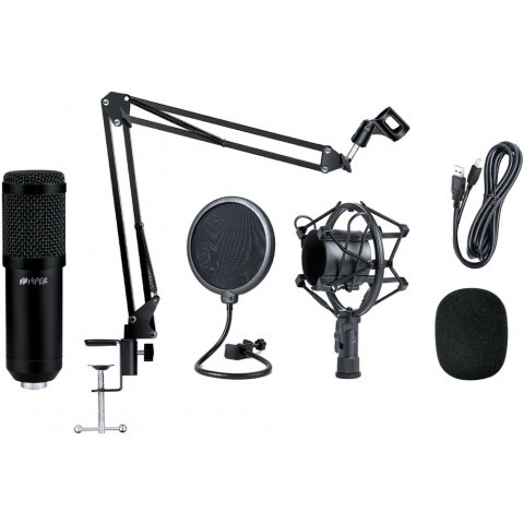 динамический микрофон для стримеров и блогеров, интерфейс: USB, сигнал/шум: 78 дБ, частотный диапазон: 20-20000 Гц, чувствительность: -32 дБ +/- 2 Дб, кардиоидная направленность, в комплекте держатель "гусиная шея" и поп-фильтр