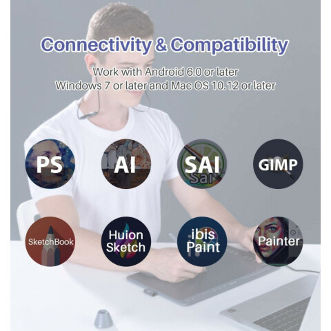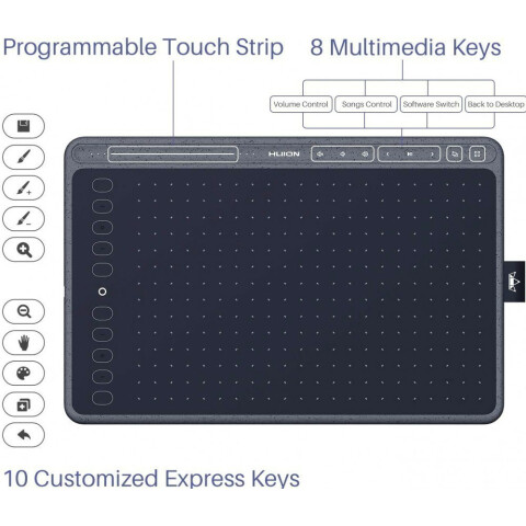 графический планшет, рабочая область 258x162мм, разрешение 5080lpi, интерфейс: USB Type-C, 10 программируемых клавиш, точность пера 0.3мм, угол наклона 60°, мультимедийная панель с функцией управления музыкой