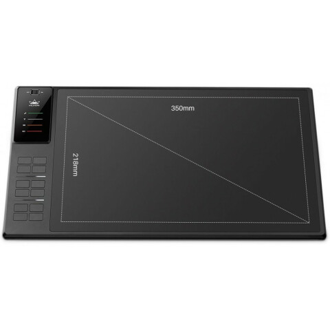 Wi-Fi планшет с размером рабочей площади 350x218мм, 5080 lpi, 8ГБ Flash, 12 клавиш, перо PW500, 8192 уровней нажима, рабочая высота 15мм, USB, аккумулятор 2000 мАч обеспечивает до 40ч автономной работы, 455x266x16мм