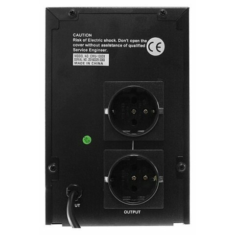 1-фазное входное напряжение, выходная мощность 1000 ВА / 600 Вт, 4 мин работы при полной нагрузке, 11 мин работы при половинной нагрузке, выходных разъемов: 2, разъемов с питанием от батареи: 2, время зарядки 4 ч