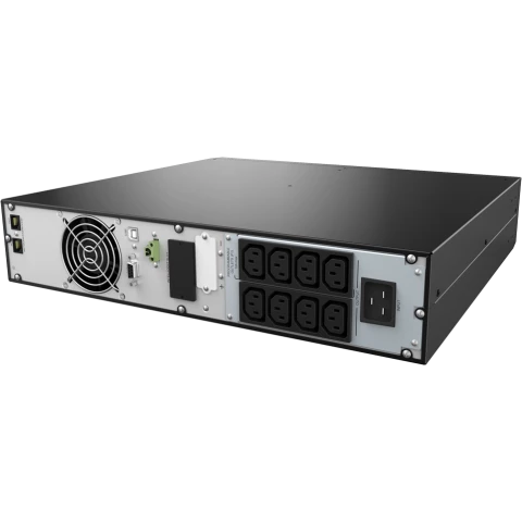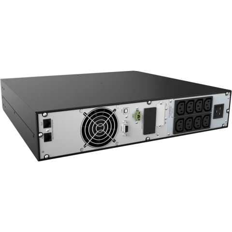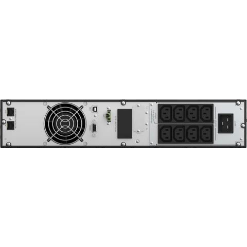 ИБП с двойным преобразованием (On-line), выходная мощность 2000 ВА / 2000 Вт, 8 разъёмов IEC 320 C13, 2x RJ-45, RS-232, USB, защита локальной сети, время зарядки 3 ч