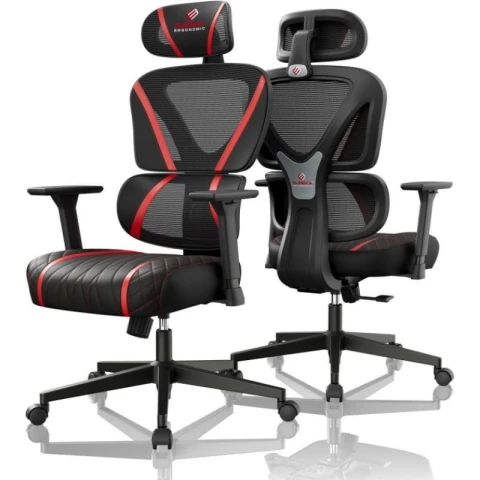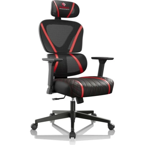 материал обивки: текстиль/искусственная кожа, нагрузка до 136 кг, материал крестовины: пластик, особенности: механизм качания, поясничный упор, спинка из сетки, цвет: красный, чёрный