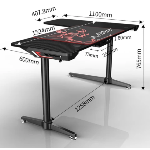 игровой стол, материал столешницы: МДФ, металлический каркас, отверстия для кабелей