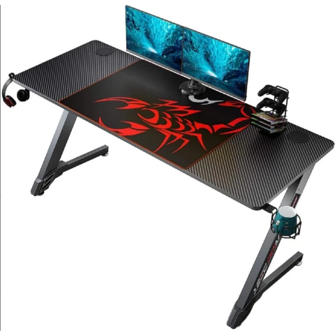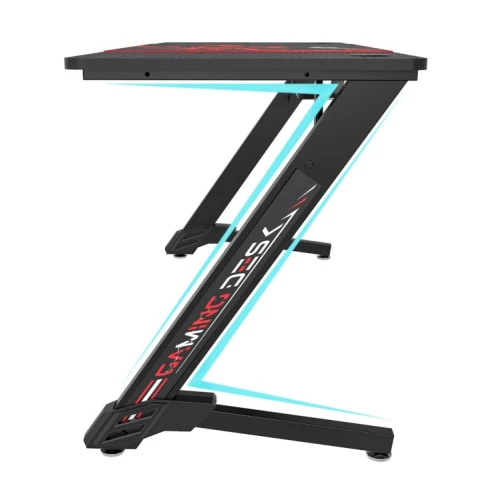 игровой стол, материал столешницы: ЛДСП, металлический каркас, нагрузка до 73 кг, подстаканник, держатель для наушников, отверстия для кабелей