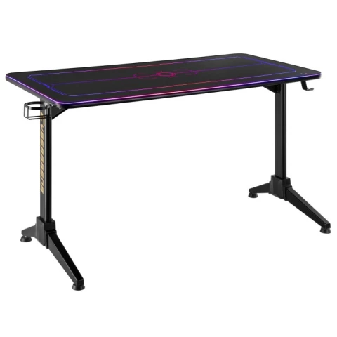 игровой стол, материал столешницы: МДФ, металлический каркас, нагрузка до 100 кг, подсветка, подстаканник, держатель для наушников