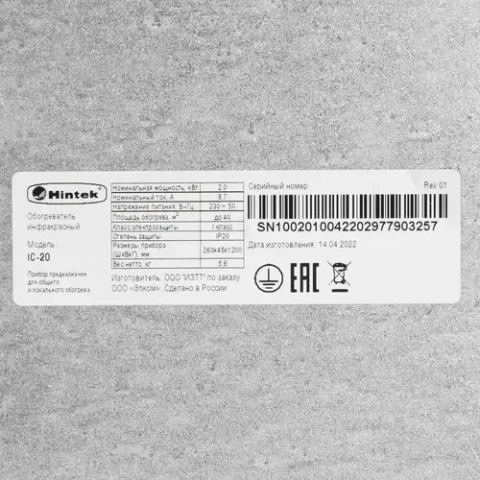 Инфракрасный обогреватель Hintek IC-20