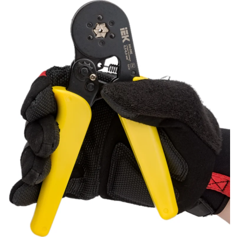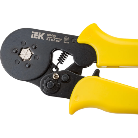 клещи для обжима, гексагональный профиль обжима, предназначены для опрессовки наконечников-гильз Е, НГИ2 и НГ сечением 0.5 - 6.0 кв. мм, саморегулирующаяся матрица, поворотный регулятор усилия, удобные ручки