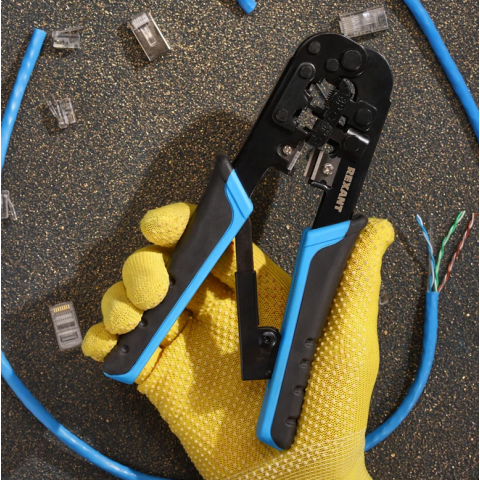универсальный инструмент для обжима разъемов RJ-45 (8P8C), RJ-12 (6P6C) и RJ-11 (6P4C и 6P2C), а также для снятия изоляции и обрезки проводов