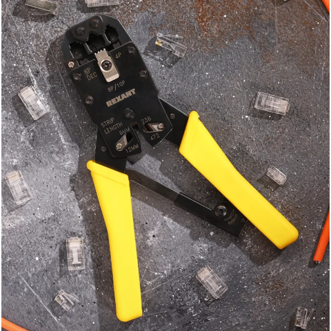 универсальный инструмент для обжима разъемов RJ-45, RJ-12, RJ-11, а также для снятия изоляции и обрезки проводов, корпус выполнен из высокопрочной хром-ванадиевой стали