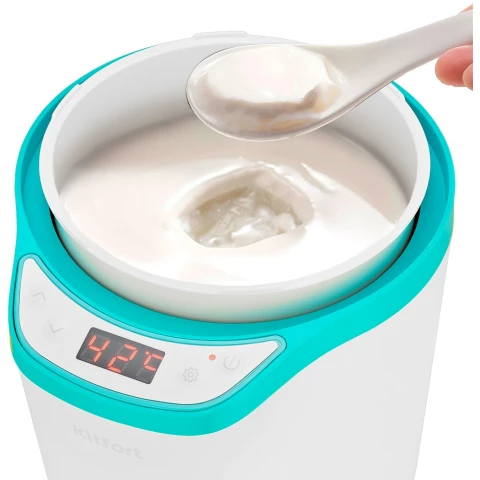 Бренд: Kitfortйогуртница с электронным управлением, мощность 25 Вт, пластиковый корпус, 2 контейнера: 1.8 л и 1.6 л, дисплей, таймер, время установки до 99 ч, индикатор работы