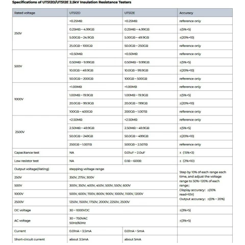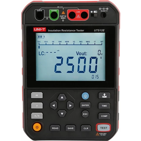 измеритель сопротивления изоляции, до 2.5 кВ, до 1 ТОм, память на 999 измерений, CAT IV 600 В, питание: литиевая батарея 14.8 В, 5200 мАч, автоотключение, тест напряжения пост./перем. 30-1000В/30-750В