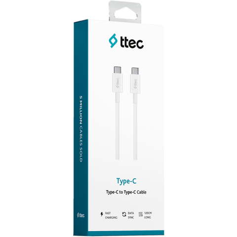 Кабель USB Type-C - USB Type-C, 1.2м, ttec 2DK36B White_1