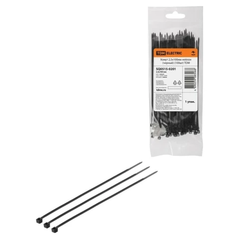 стяжка, 100 мм x 2.5 мм, цвет: чёрный, 100 шт.